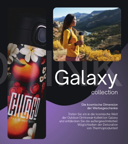 Galaxy collection Die kosmische Dimension der Werbegeschenke Treten Sie ein in die kosmische Welt der Outdoor-Drinkwear-Kollektion Galaxy und entdecken Sie die außergewöhnlichen Möglichkeiten der Dekoration von Thermoprodukten! 82