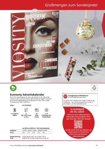gefüllt mit Vollmilchschokolade mit mindestens 35 % Kakao, 3-fach verklebt. Das perfekte Weihnachtsmailing in stabiler Einzelkartonage,