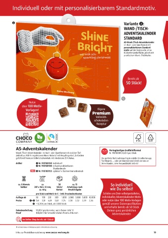 Auflage ab 50 100 250 500 1.000 2.000 3.000 5.000 10.000 individuelles Advents kalender-Motiv