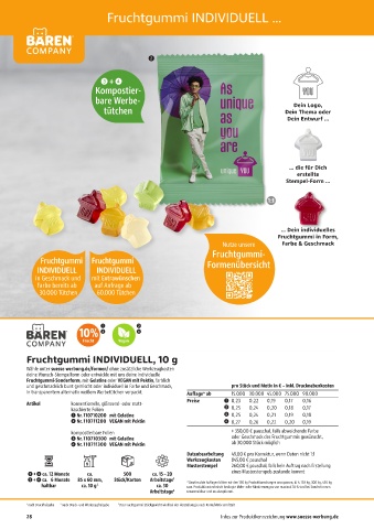 1 nach Druckfreigabe 2 nach Druck- und Werkzeugfreigabe 3 Das Fruchtgummi Stückgewicht wird bei der Herstellung je nach Form/Motiv ermittelt