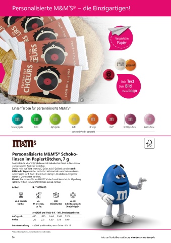 Hinweis: Die personalisierten M&M’S® Schokolinsen können bei der Abpackung