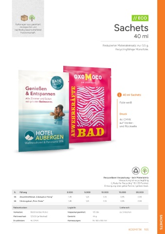 Druckfarben: 4c CMYK Abmessungen: 7 x 60 x 100 mm Druckfarben: 4c CMYK Abmessungen: 9 x 100 x 150 mm SACHETS