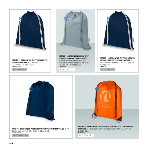 120575 | OREGON 140 G/M² TURNBEUTEL GRS certified recycled cotton 60%, AUS GRS RECYCELTER BAUMWOLLE |
