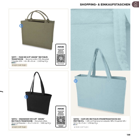 120712 | WEEKENDER 500 G/M² AWARE™ 120752 | SIAM GRS-RECYCELTE STRANDTRAGETASCHE AUS