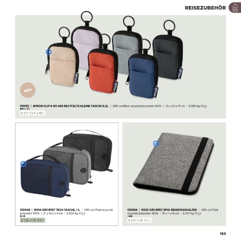 130048 | ROSS GRS RPET TECH TASCHE, 1 L | GRS certified recycled 130058 | ROSS GRS RPET RFID-REISEPASSHALTER | GRS certified