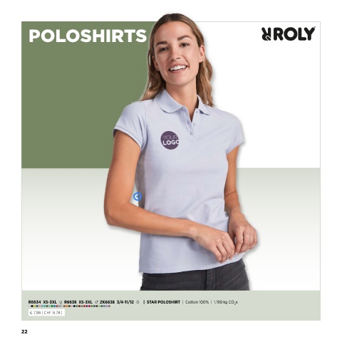 POLOSHIRTS R6634 XS-3XL f R6638 XS-3XL m ZK6638 3/4-11/12 k | STAR POLOSHIRT | Cotton 100% | 1.199 kg CO e f m k 2 € 7.98 | CHF 8.78 | 22