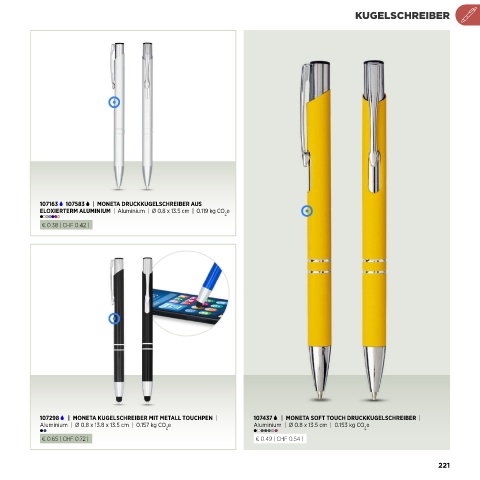 107298 | MONETA KUGELSCHREIBER MIT METALL TOUCHPEN | 107437 | MONETA SOFT TOUCH DRUCKKUGELSCHREIBER |