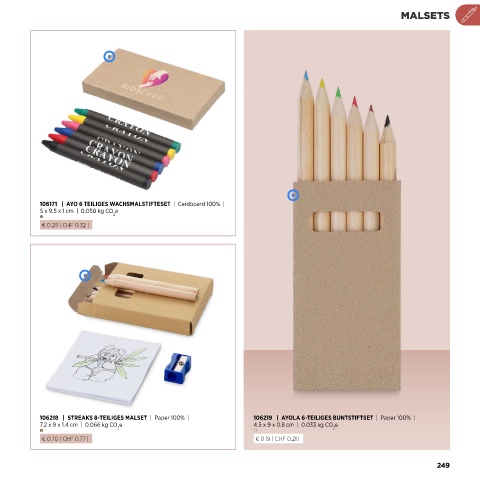 106218 | STREAKS 8-TEILIGES MALSET | Paper 100% | 106219 | AYOLA 6-TEILIGES BUNTSTIFTSET | Paper 100% |