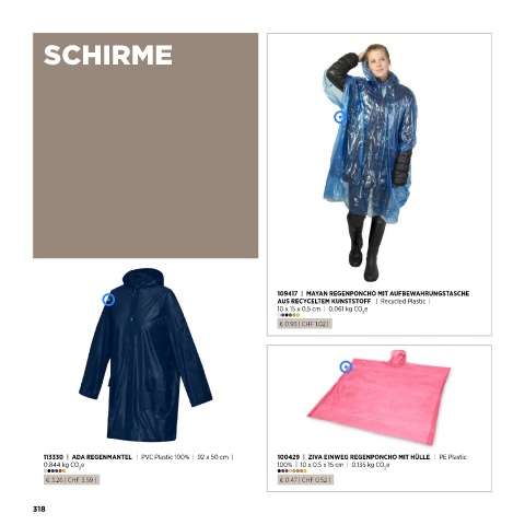 113330 | ADA REGENMANTEL | PVC Plastic 100% | 92 x 50 cm | 100429 | ZIVA EINWEG REGENPONCHO MIT HÜLLE | PE Plastic