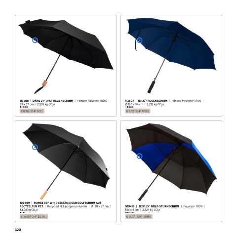 113508 | DANE 21" RPET REGENSCHIRM | Pongee Polyester 100% | 113507 | IBI 27" REGENSCHIRM | Pongee Polyester 100% |