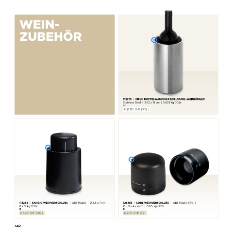 113284 | SANGIO WEINVERSCHLUSS | ABS Plastic | Ø 4.6 x 7 cm | 126363 | CORE WEINVERSCHLUSS | ABS Plastic 60% |