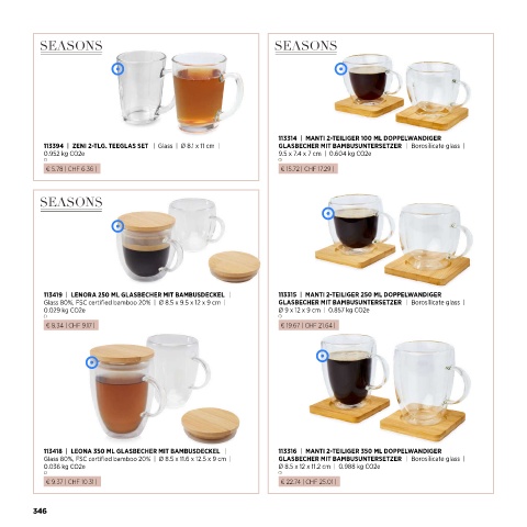 113418 | LEONA 350 ML GLASBECHER MIT BAMBUSDECKEL | 113316 | MANTI 2-TEILIGER 350 ML DOPPELWANDIGER