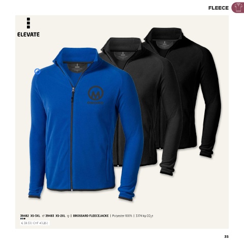 FLEECE 39482 XS-3XL m 39483 XS-2XL f | BROSSARD FLEECEJACKE | Polyester 100% | 3.174 kg CO e f m 2 € 39.33 | CHF 43.26 | 35