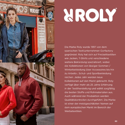 gegründet. Roly hat sich auf Freizeittextilien