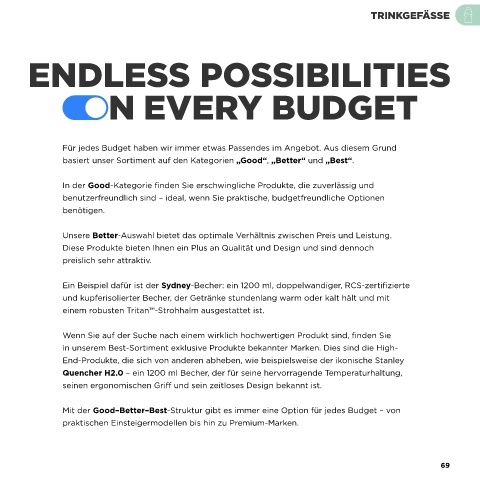 basiert unser Sortiment auf den Kategorien „Good“, „Better“ und „Best“.
