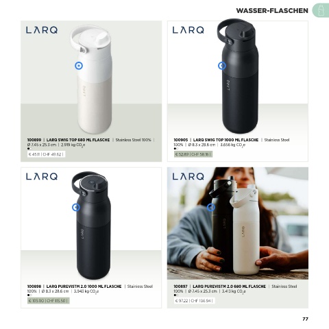 100899 | LARQ SWIG TOP 680 ML FLASCHE | Stainless Steel 100% | 100905 | LARQ SWIG TOP 1000 ML FLASCHE | Stainless Steel