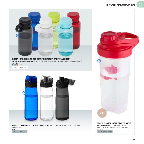 100313 | CAPRI 700 ML TRITAN™ SPORTFLASCHE | Eastman Tritan™ | Ø 7.7 x 25 cm | MIT SHAKERBALL | PP Plastic 100% |