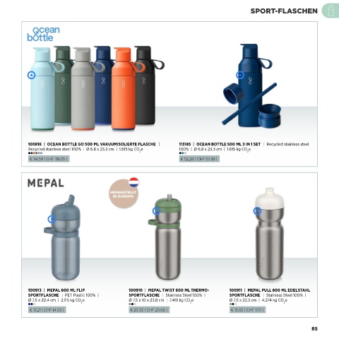 SPORTFLASCHE | PET Plastic 100% | SPORTFLASCHE | Stainless Steel 100% | SPORTFLASCHE | Stainless Steel 100% |