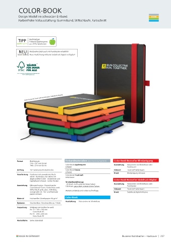 Umfang 192 Seiten plus Einstecktasche Color-Book Future Einband Tivoli-Soft tiefschwarz
