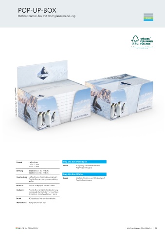 Verarbeitung Haftnotizen in Pop-Up-Box eingelegt · Druck Weiße Haftnotizen und 4C-Quality auf