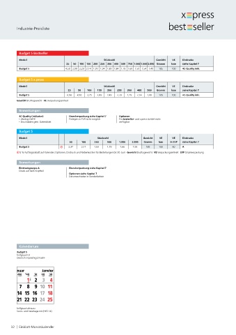 Modell Stückzahl Gewicht VE VE Eindrucke