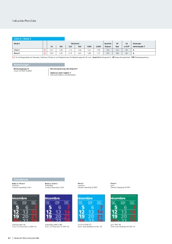 5 % Auftragsrabatt auf Kalender, Optionen, Eindruck und Nebenkosten für Bestellungen bis 30. Juni · Gewicht Bruttogewicht · VE Verpackungseinheit · EVP Einzelverpackung