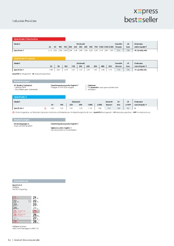 Modell Stückzahl Gewicht VE Eindrucke