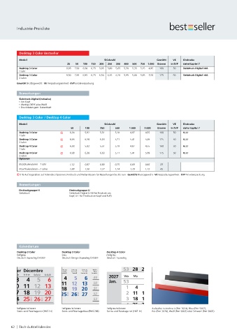 5 % Auftragsrabatt auf Kalender, Optionen, Eindruck und Nebenkosten für Bestellungen bis 30. Juni · Gewicht Bruttogewicht · VE Verpackungseinheit · EVP Einzelverpackung