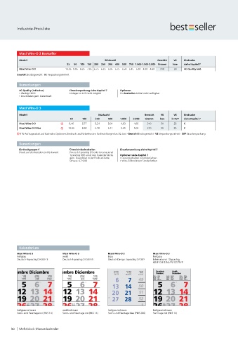 5 % Auftragsrabatt auf Kalender, Optionen, Eindruck und Nebenkosten für Bestellungen bis 30. Juni · Gewicht Bruttogewicht · VE Verpackungseinheit · EVP Einzelverpackung