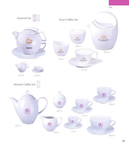 Sets N E Imperial Set E U W Swan Coffee Set 180 ml 900 ml 150 ml 150 ml 340 ml 220 ml E Venezia Coffee Set U 200 ml 280 ml 150 ml 1200 ml 75 ml 340 ml 450 ml 43