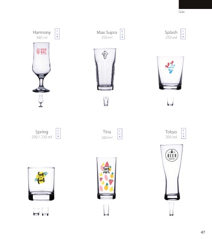 Glas Harmony E U Max Supra U E Splash U E 340 ml 350 ml 250 ml Glas Spring E U Tina E Tokyo U E 200 / 230 ml 260 ml U 300 ml 47