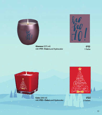 Glamour (375 ml) P19 mit P19-Dekor und Hydrocolor 1 Farbe Cube (300 ml) P20 mit P20-Dekor und Hydrocolor 2 Farben 11 11