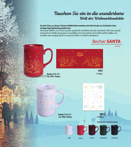 Die Tassen SANTA und CLAUS wurden speziell für die Weihnachtszeit entwickelt. Mit ihren speziell