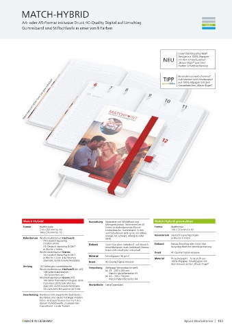 Match-Hybrid Ausstattung Notizseiten mit Winkelkaro und Match-Hybrid green+blue