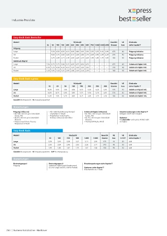 Modell Stückzahl Gewicht VE VE Eindrucke