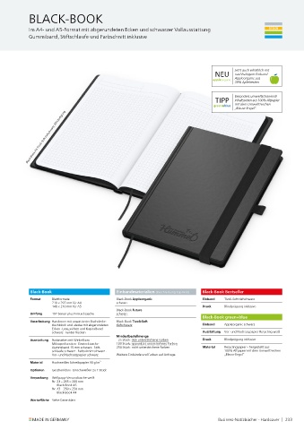 Verarbeitung Hardcover mit unwattierter Buchdecke · Black-Book Tivoli-Soft