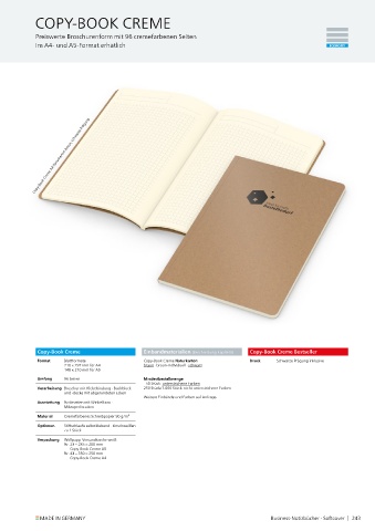 Format Blattformate Copy-Book Creme Naturkarton Druck Schwarze Prägung inklusive