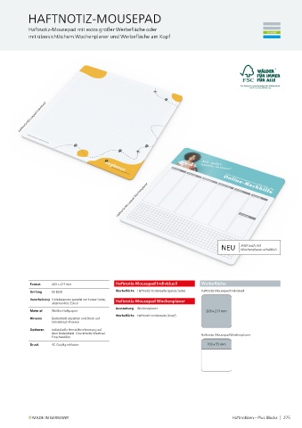dem Bodenblatt · Druckmotiv-Wechsel · Haftnotiz-Mousepad Wochenplaner