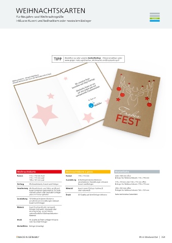 Verarbeitung Weihnachtskarte zum Falten gerillt und Material Kuvert sowie Einleger hochweiß 204 × 202 mm offen