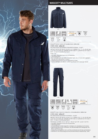 (ATPV - 7,7 cal/cm²) und EN 13034 (Typ 6).