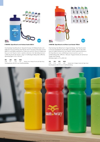 LT98785 | Sportflasche mit Halteschlaufe 500ml LT98736 | Sportflasche mit Rand und Kordel 750ml