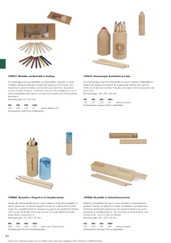 LT91584 | Buntstifte in Pappröhre mit Anspitzerdeckel LT91586 | Buntstifte in Holzschiebeschachtel