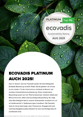 EcoVadis-Bewertung erreicht: Platin. Damit gehören wir erneut