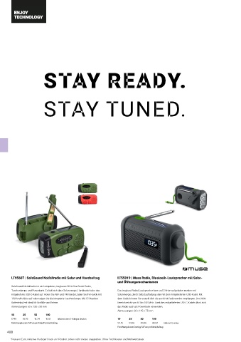 LT95607 | SafeSound Notfallradio mit Solar und Handaufzug LT55019 | Muse Radio, Bluetooth-Lautsprecher mit Solar-