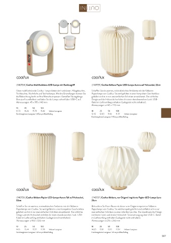 LT40724 | Coollux Multifunktions-LED-Lampe mit Bambusgriff LT40725 | Coollux faltbare Papier LED-Lampe Aurora auf Holzsockel, 22cm