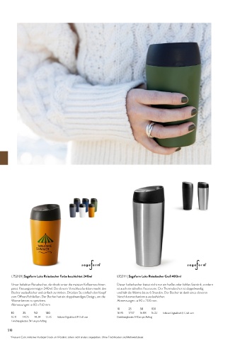 passt. Fassungsvermögen 240ml. Die clevere Verschlussfunktion macht den ist auch ein stilvolles Accessoire. Der Thermobecher ist doppelwandig
