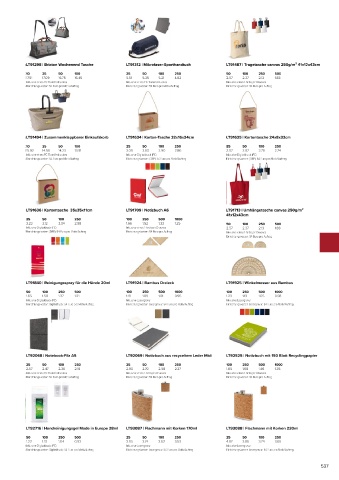 LT91636 | Kartontasche 35x35x11cm LT91709 | Notizbuch A6 LT91713 | Umhängetasche canvas 250g/m²