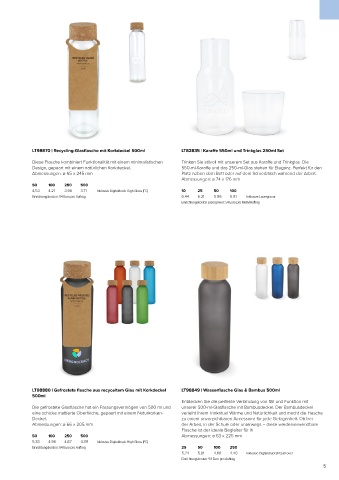 LT98870 | Recycling-Glasflasche mit Korkdeckel 500ml LT82835 | Karaffe 550ml und Trinkglas 250ml Set