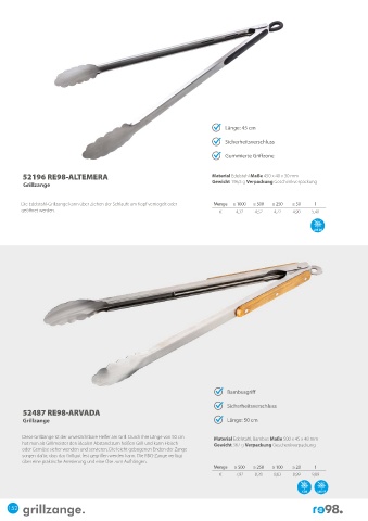 Die Edelstahl-Grillzange kann über Ziehen der Schlaufe am Kopf verriegelt oder Menge ≥ 1000 ≥ 500 ≥ 250 ≥ 50 1