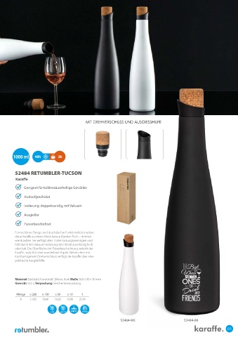 Kork bezogenem Drehverschluss verfügt die Karaffe über eine